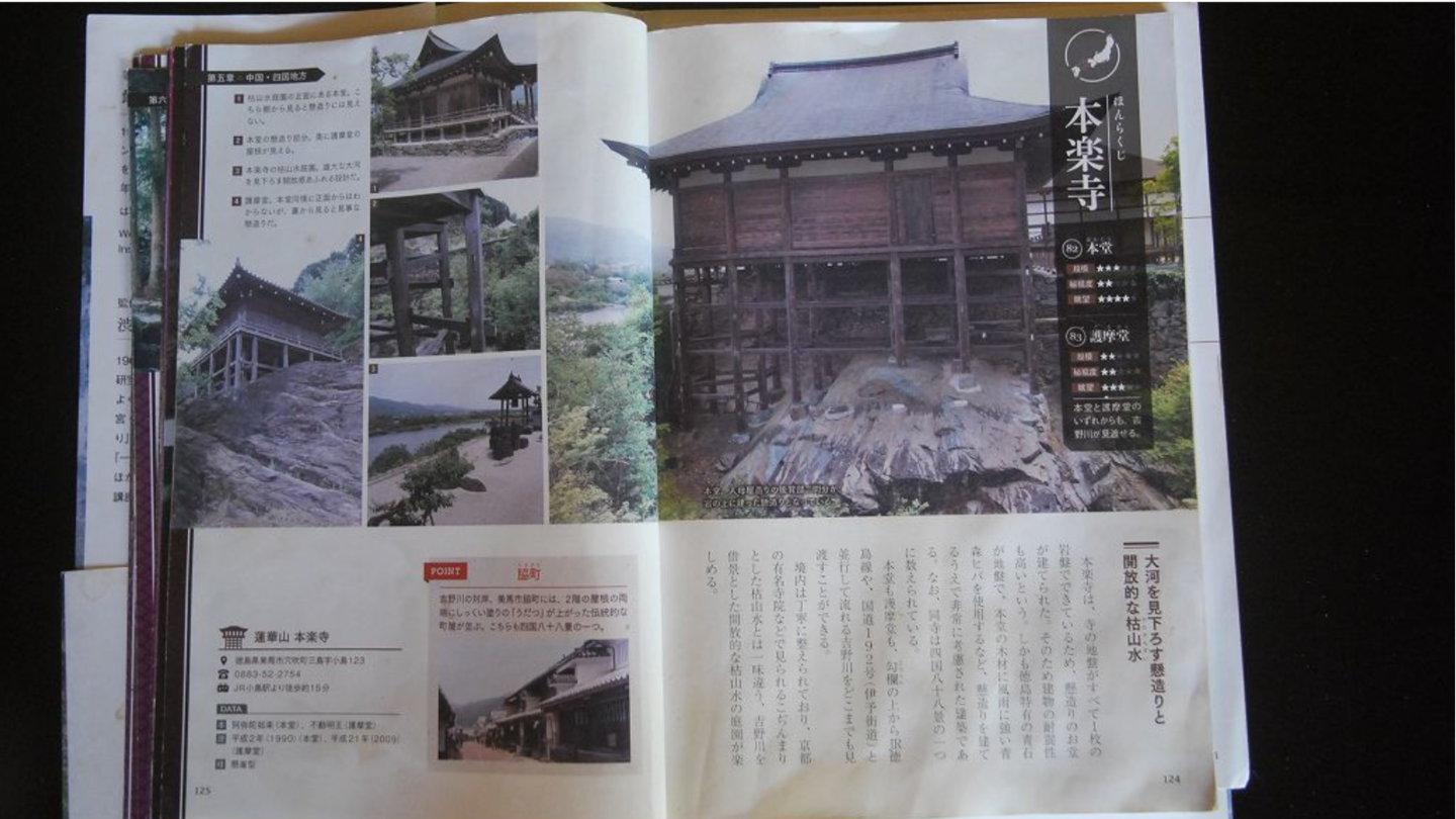 本楽寺は、寺の地盤がすべて1枚の岩盤でできているため、懸造りのお堂が建てられた。そのため建物の耐震性も高いという。しかも徳島特有の青石が地盤で、本堂の木材に雨風に強い青森ヒバを使用するなど、懸造りを建てるうえで非常に考慮された建築である。なお、同寺は四国八十八景の一つに数えられている。
