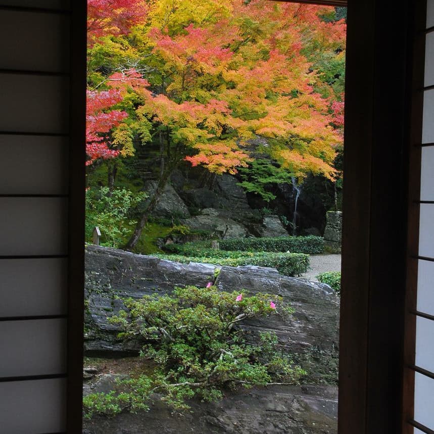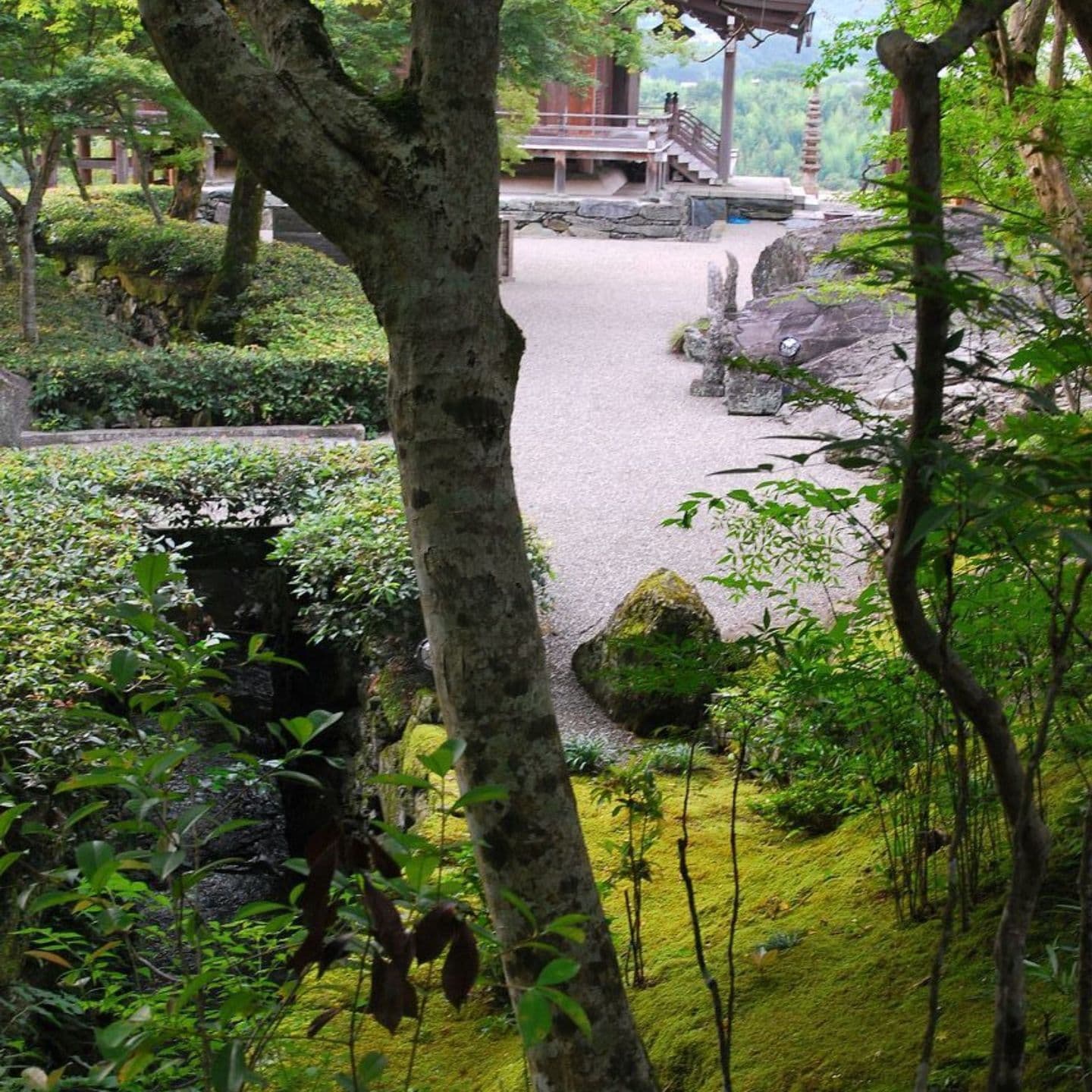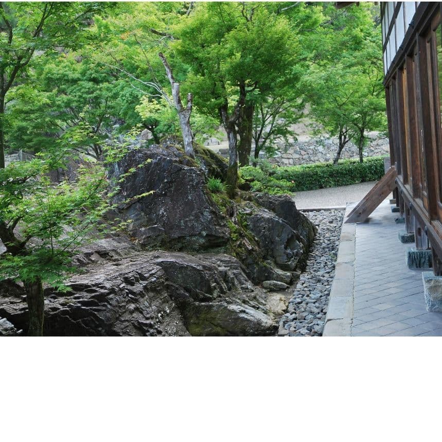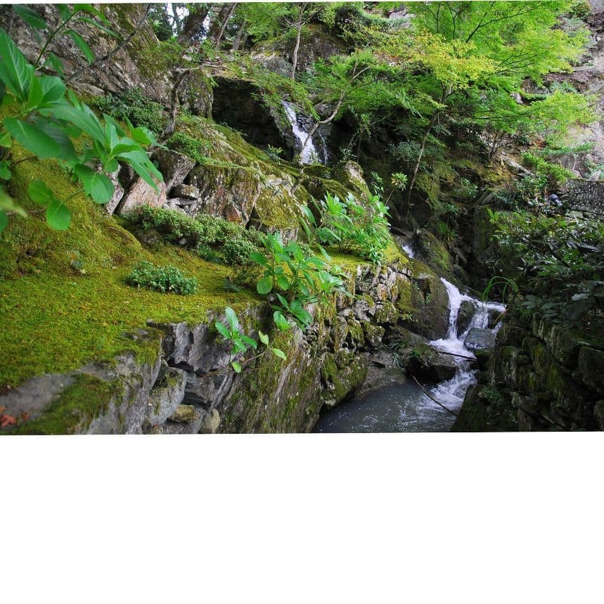 日本庭園は、大自然の美を縮図したものであり、芸術的にアレンジしたものです。いながらにして、小庭から大自然の美に接することができる唯一の空間です。そして、また人々の心を通した自然が、庭ですから、庭はただ単なる自然に接する以上のものです。例えるなら苔一面の庭も、自然のイメージがなければ単なる苔地です。自然をイメージすることにより、苔地が大自然の景色に見えてきます。だから人々は自然の雄大さに引かれて足をとめ、見とれてしまうと思われます。石や木という自然の材料で自然を描写する。そして大自然を寸尺の狭い空間に写すことによって、かえって自然の美しさが一層はっきりと強く感じられることができます